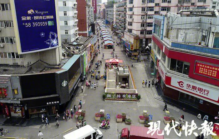 而在施工改造期间,由于交通不畅,人流变少,不少业态搬迁撤离,曾经热闹的狮子桥隔三差五搞特卖会,像杂货市场,整条湖南路人气渐失。