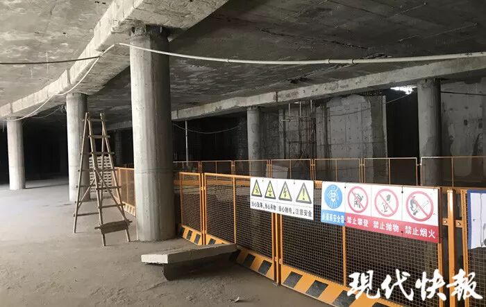 从现代快报记者调查来看,到底今年底能否顺利开业,仍要打个问号。目前,地下商业街部分已经贯通,不过还处于毛坯状态,没有任何装修。通往地下商业街的出入口,放置着木料、建材等杂物,一些地方由于缺乏清理,已经积水,还有些地方垃圾成堆,藏污纳垢。